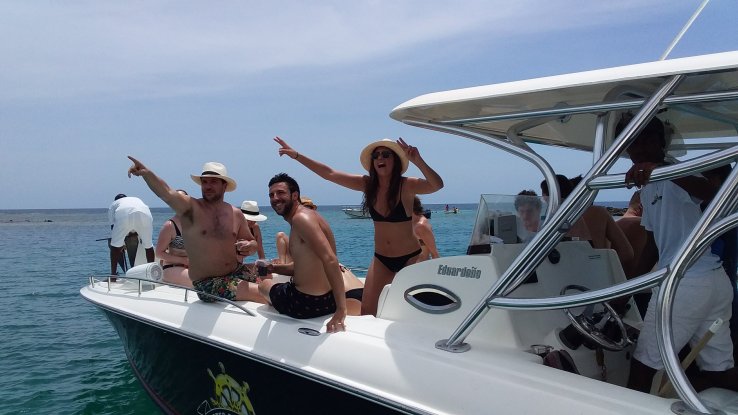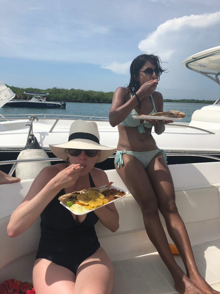 4 bateaux décollent du port, et nous passerons la journée dessus. Au programme : découverte des archipels, plongeon dans les eaux turquoises, danse à bord des bateaux, dégustation de poissons frits et beignets de banane plantain, bronzette, danse et redanse sous le soleil de plomb, et tout ça avec beaucoup de rhum 🙂