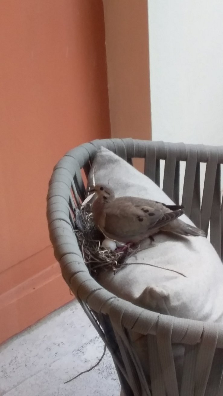 Notre oiseau est maintenant à 3 oeufs pondus, le père veille au grain quand la mère couve.