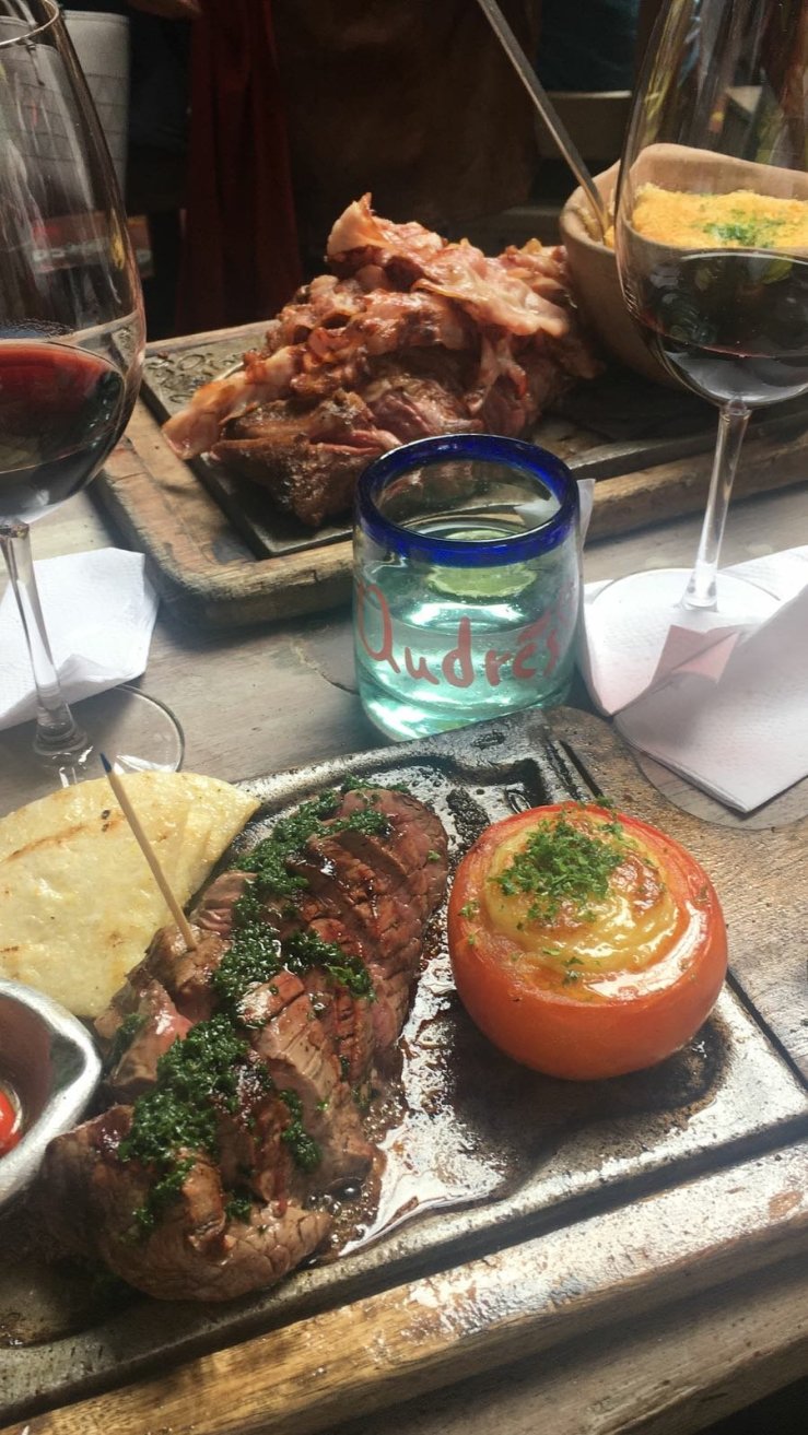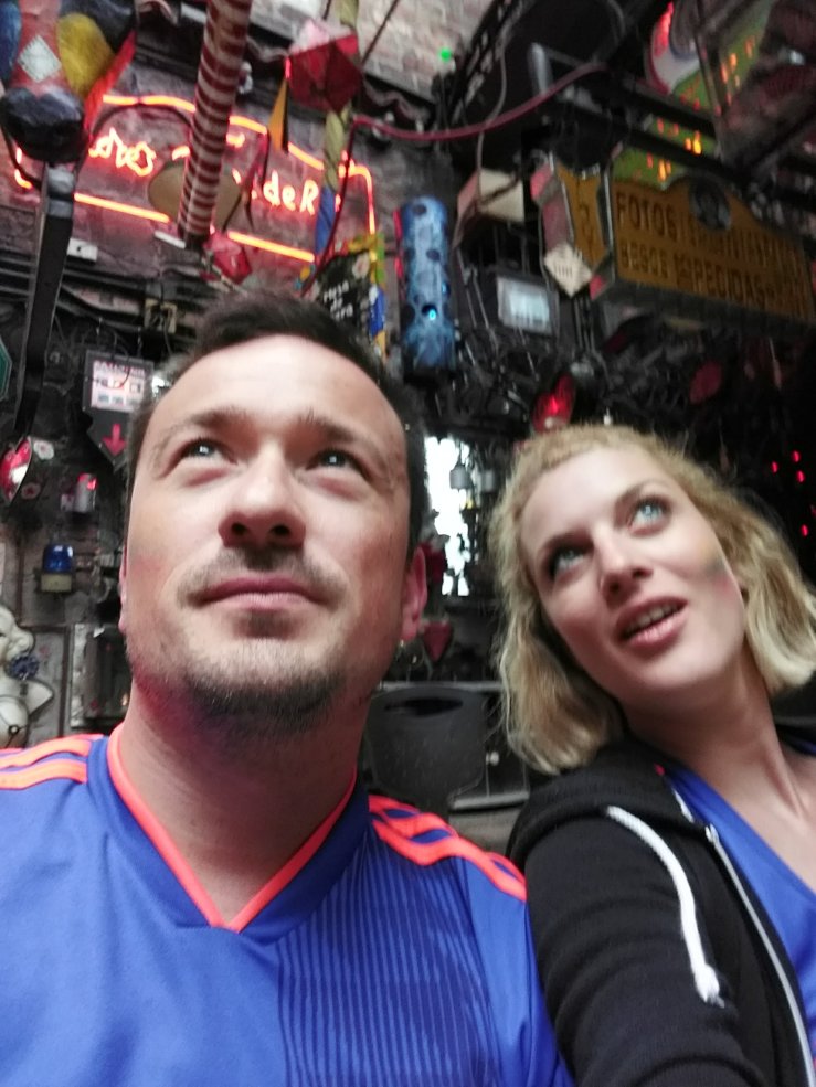 Les supporters sont déchaînés, les footballeurs colombiens marquent 3 buts dans une ambiance de folie, on crie, on jette des confettis jaunes, bleus et rouges, et on mange de la viande bien évidemment…