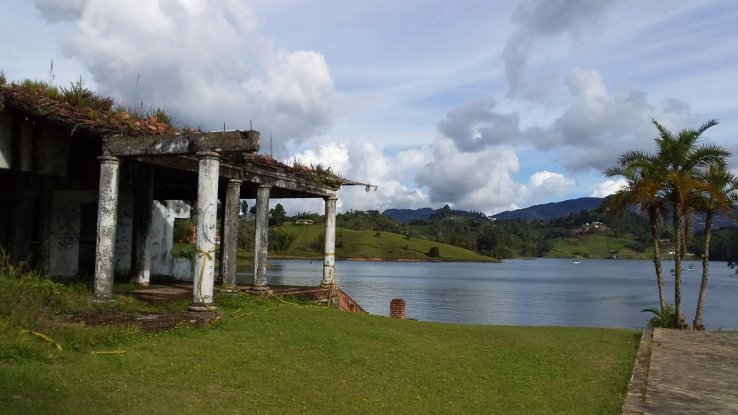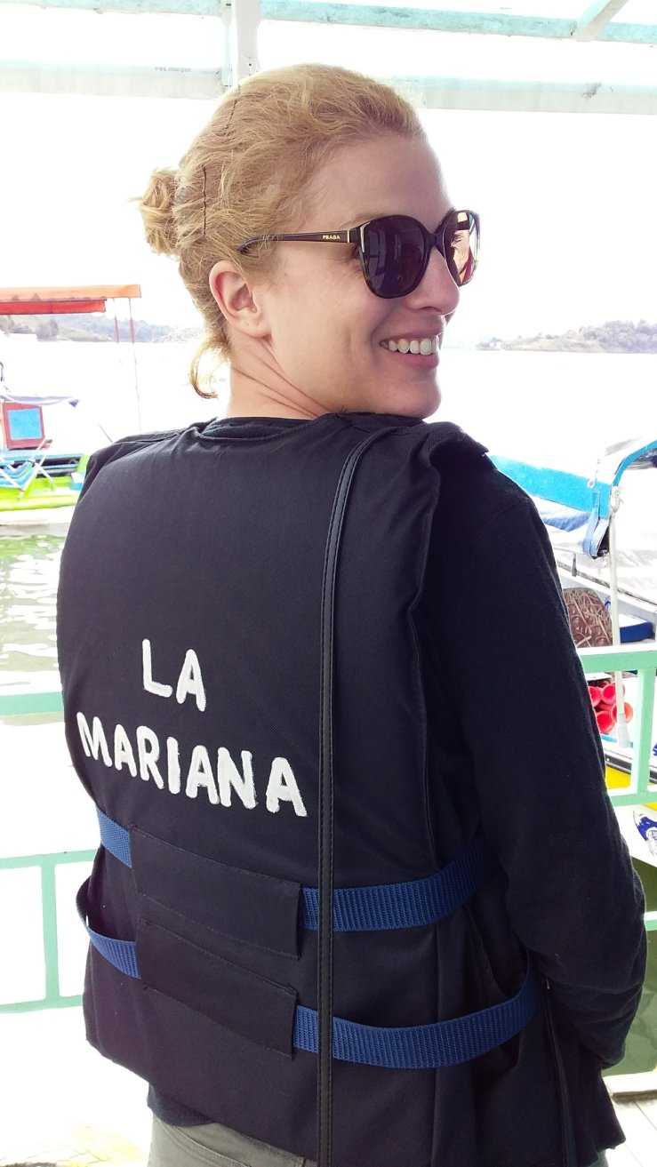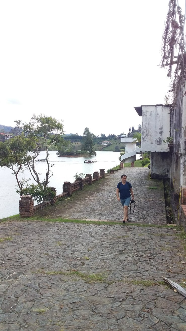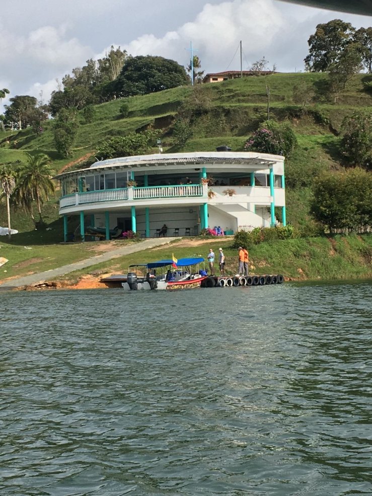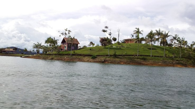 À Guatapé, une fois que nous avons visité le village, nous embarquons sur un bateau à moteur, la Mariana, direction la finca de Pablo Escobar.