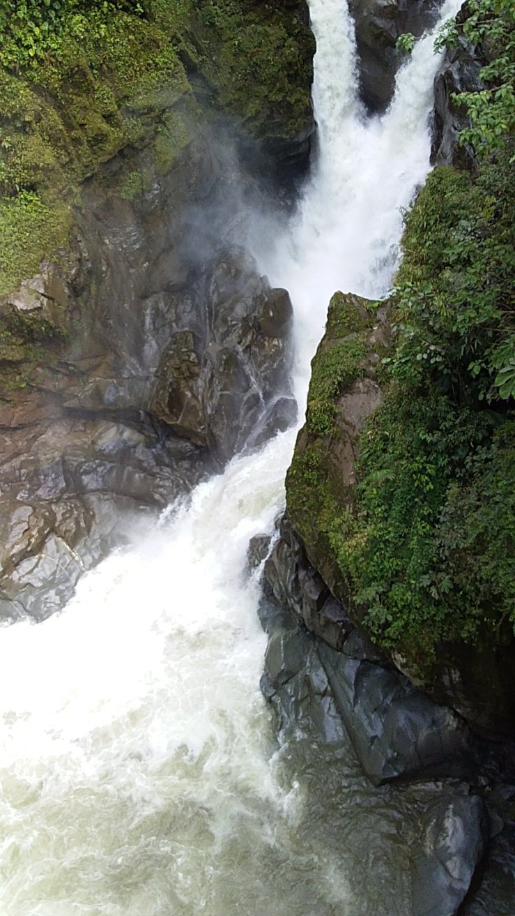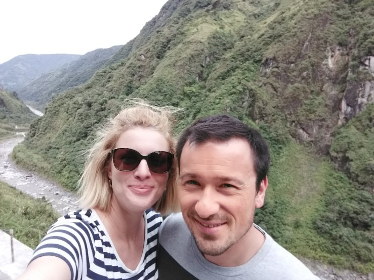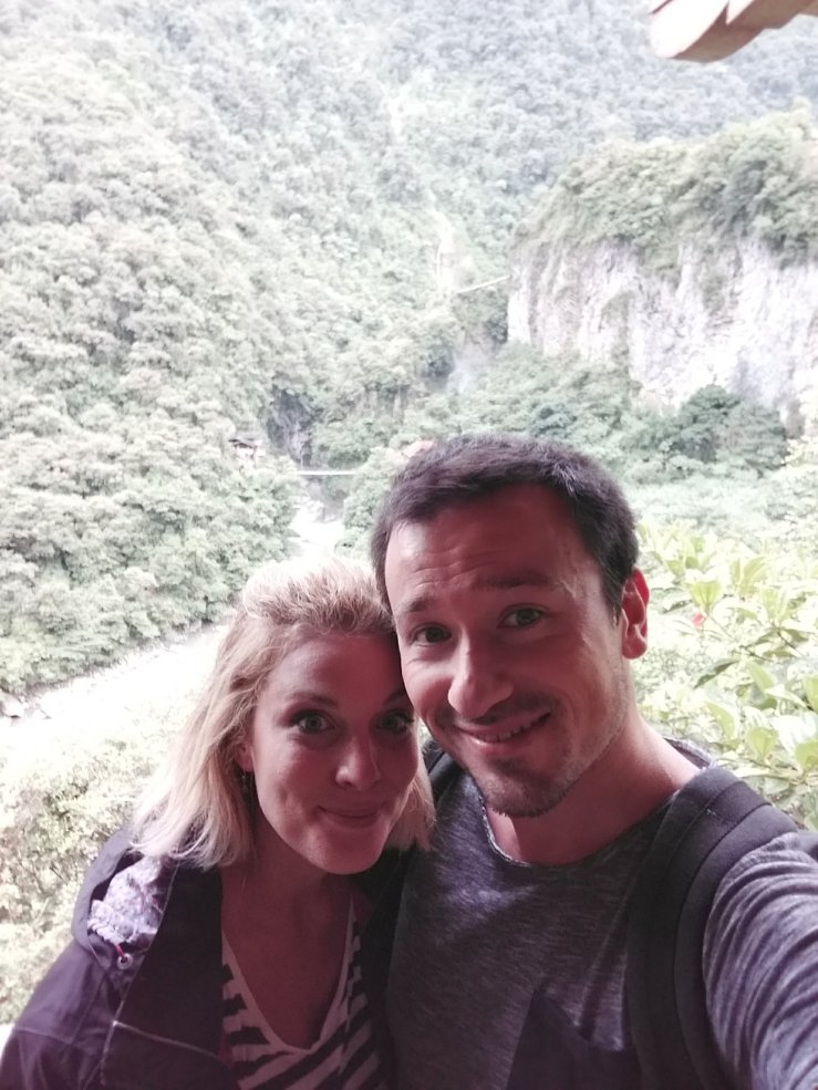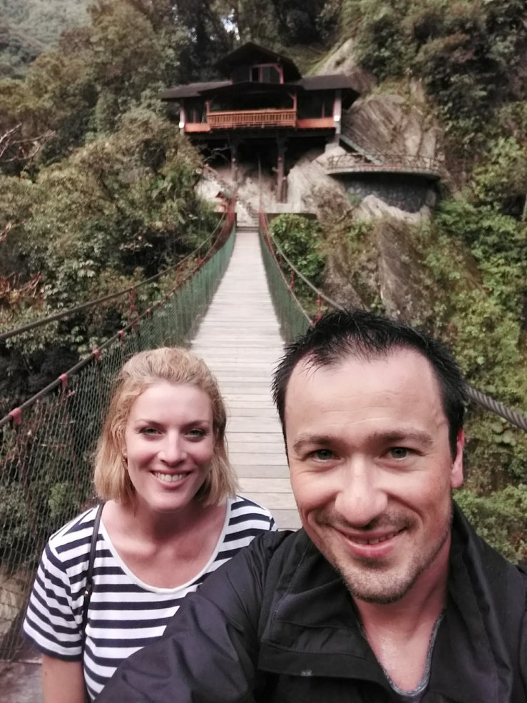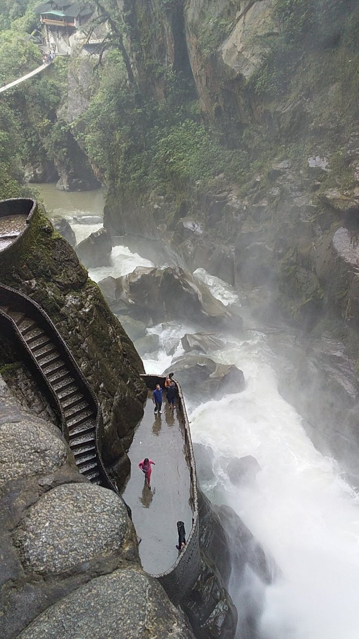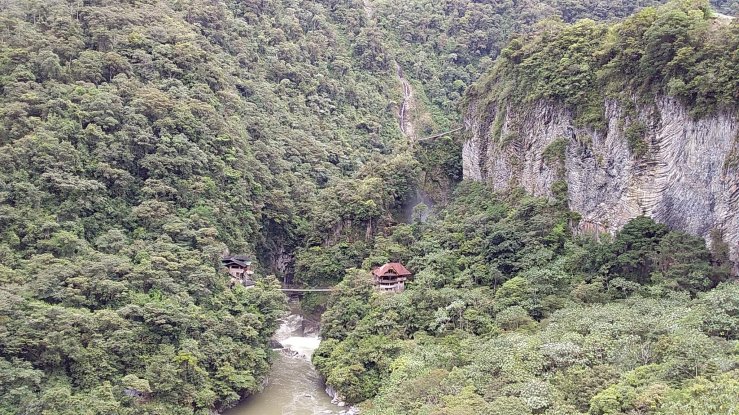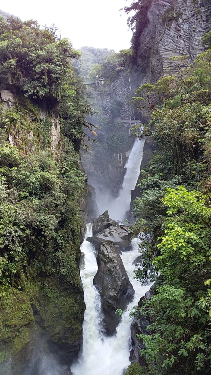 Baños, à environ 1820m d’altitude, est adossée au volcan Tungurahua, elle est à la frontière entre les Andes et l’Amazonie, il y fait donc chaud et humide et il pleut au moins une fois par jour, ce qui donne à la végétation un côté tropical exubérant comparé aux plateaux désertiques de la sierra.