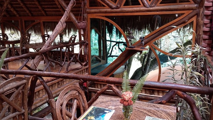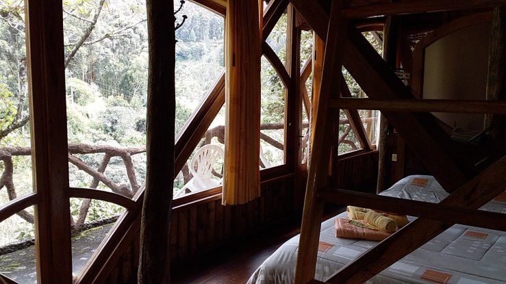 À Baños nous sejournons dans une sorte de cabane, la finca Chamanapamba, à côté d’une cascade. Il fait froid et humide la nuit et on entend très fort le bruit de la cascade dehors, comme s’il pleuvait des cordes, mais c’est romantique et dépaysant…