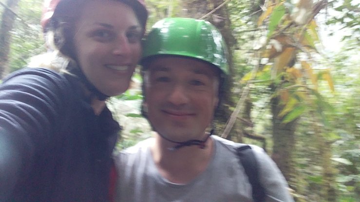 Après le rafting, nous restons dans le thème de la sensation forte, version air cette fois. On grimpe dans les montagnes tropicales de la jungle équatorienne pour se jeter dans le vide, accrochés à des tyroliennes immenses qui surplombent des cascades à au moins 30m au dessus du sol.