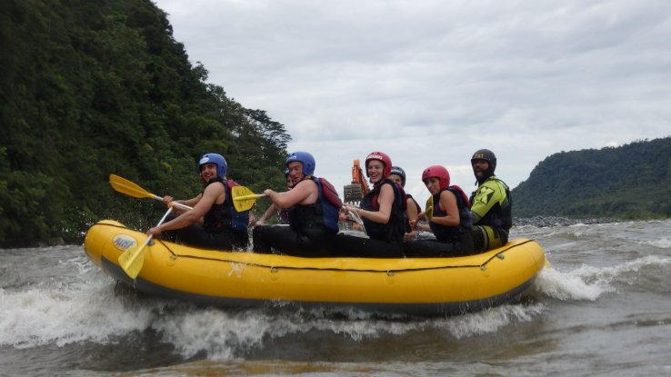 Le rafting par exemple… On nous avait promis une balade facile… au final je n’ai jamais eu aussi peur sur un bateau (quand je réussissais à rester dessus). On est 8 dans le bateau (un allemand, un norvégien, deux urugayens, une vénézuélienne et le guide), et un guide nous suit en kayak pour prendre des photos et nous récupérer si on tombe à l’eau.