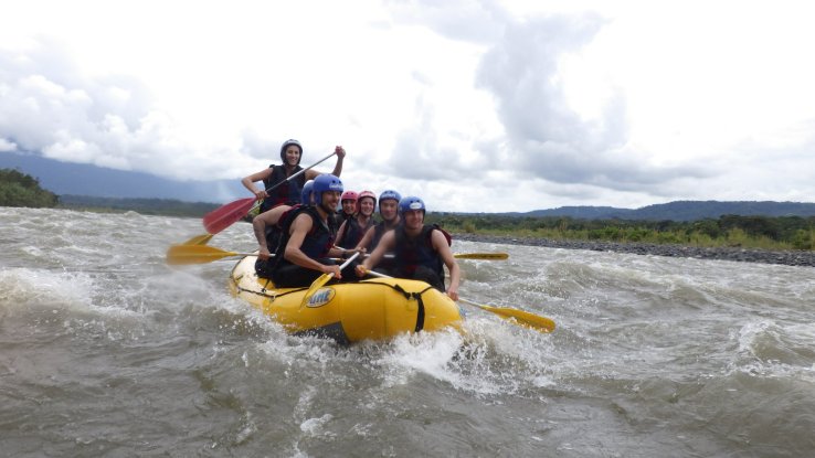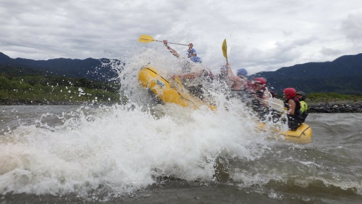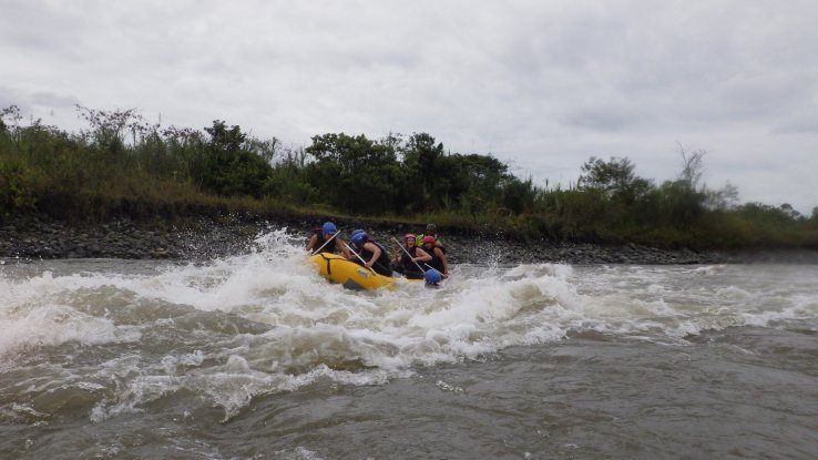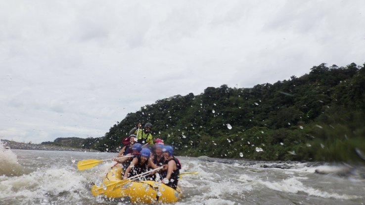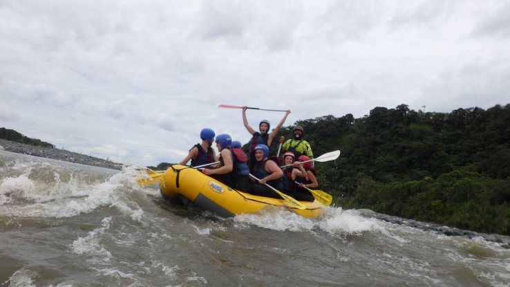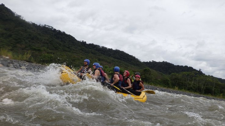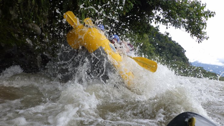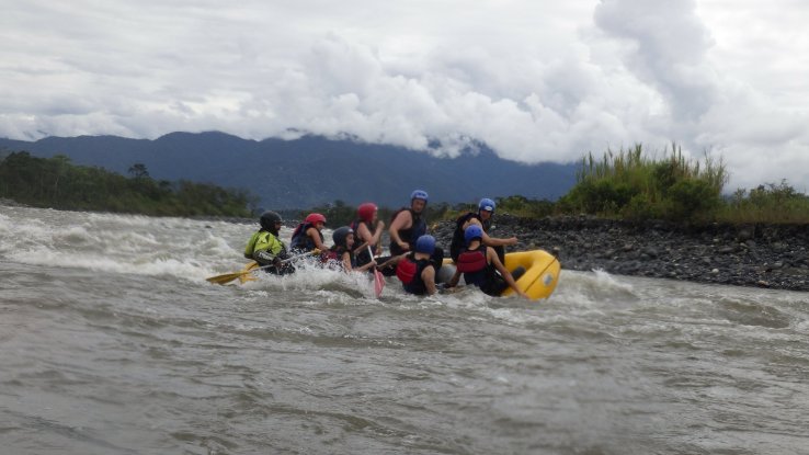Et on va y tomber à l’eau, puisqu’on prendra des rapides avec des vagues énormes, le bateau manquera de se retourner une dizaine de fois et on va tous finir à l’eau au moins 2 fois (6 fois pour ceux qui n’auront pas de chance). L’eau est bouillonnante, froide et boueuse mais on rigolera bien 😁🤤