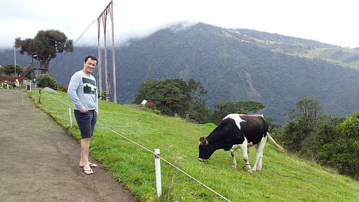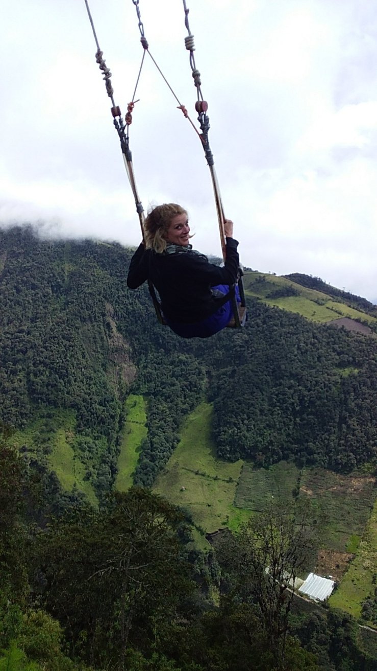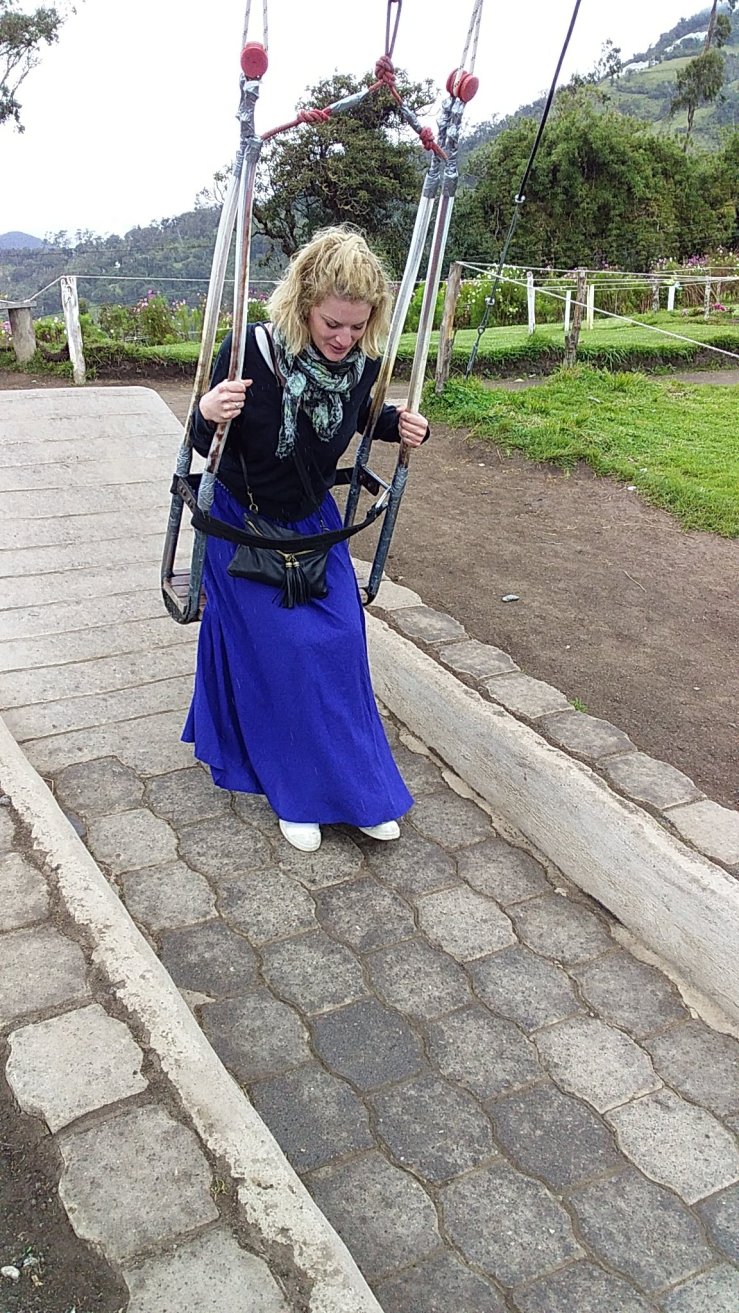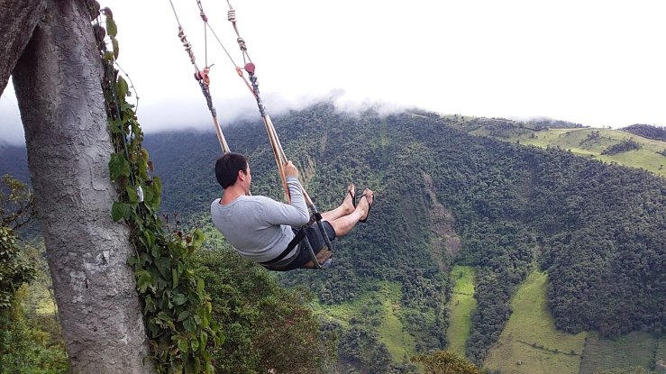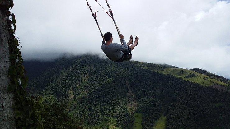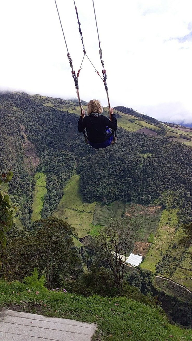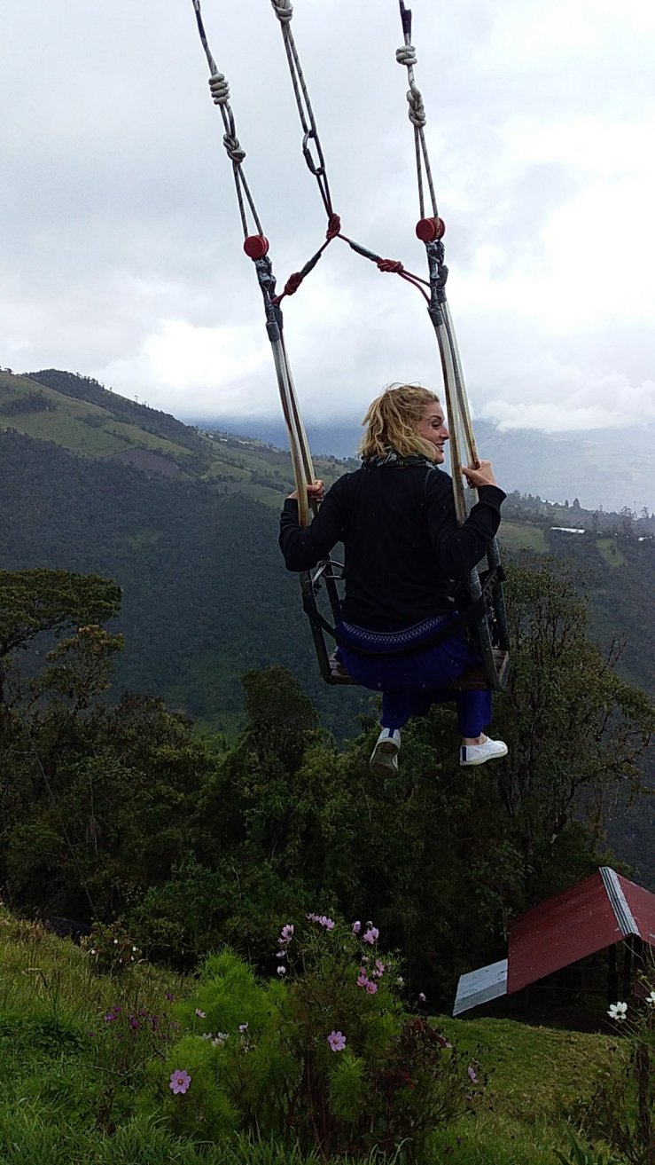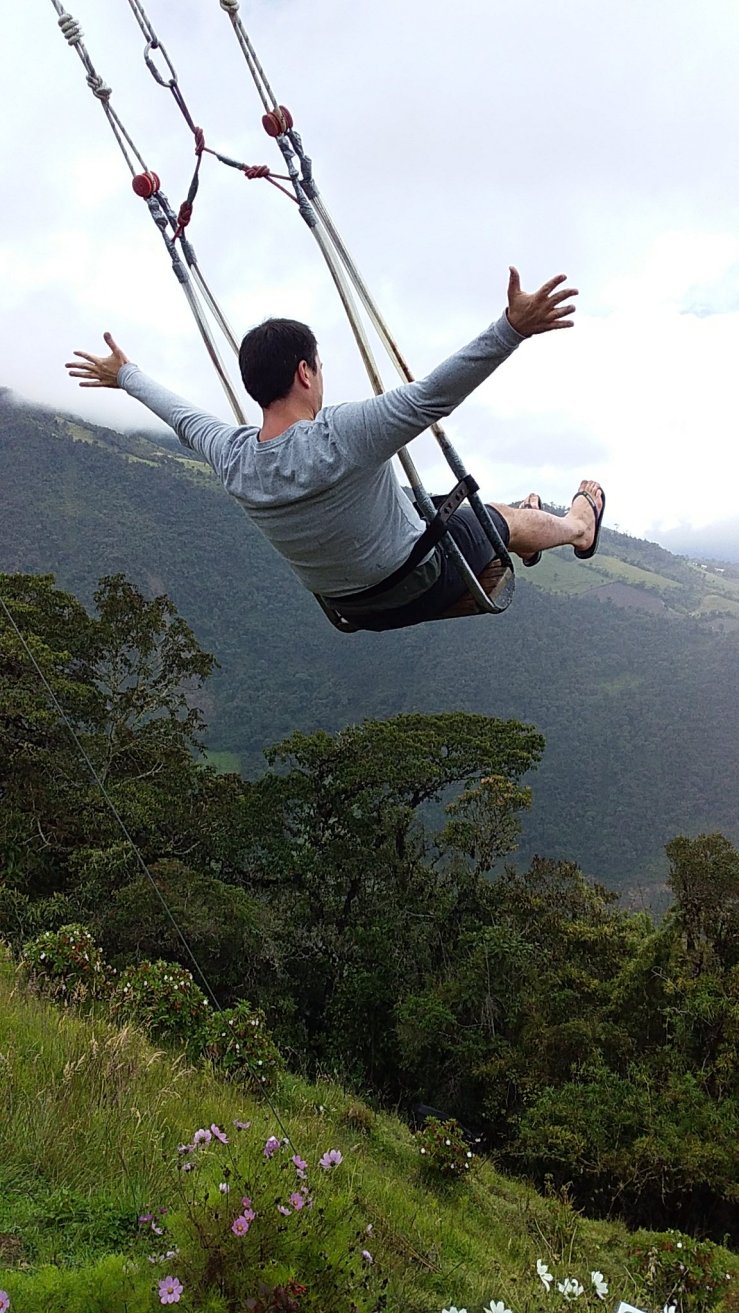 Avant de quitter Baños, nous partons visiter la casa del arból, une maison dans l’arbre comme son nom l’indique, sur une des pentes du volcan et qui surplombe la ville.