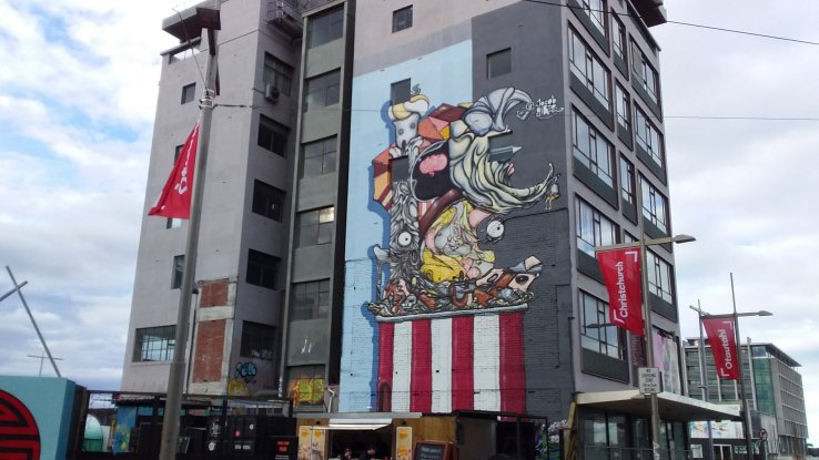 Toute la ville est ainsi un mélange de style victorien, de bâtiments très contemporains, d’édifices effondrés recouverts d’immenses et sublimes tags et de verdure, avec les botanic gardens situés dans Hagley Park.