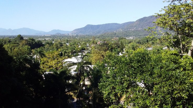 Nous avions prévu de passer 4 nuits dans un B&B sur les hauteurs de Cairns, à côté du jardin botanique. Une dame charmante nous accueille et nous fait découvrir sa maison, ce n’est pas le grand luxe mais c’est plutôt pas mal.