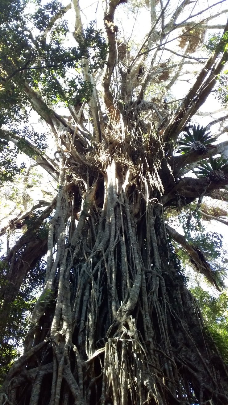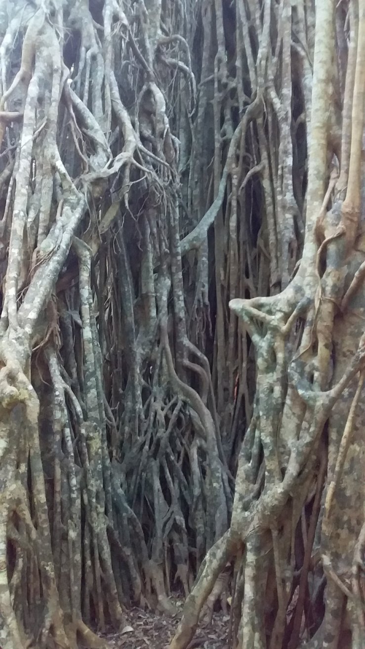 Voici les fig trees, qui ne sont en fait pas des arbres mais une espèce de lierre à liane qui grimpe sur les arbres, les recouvre et les étouffe. Les branches pendent ensuite jusqu’au sol recréant de nouvelles racines. C’est immense et très impressionnant, celui-ci a plus de 500 ans!