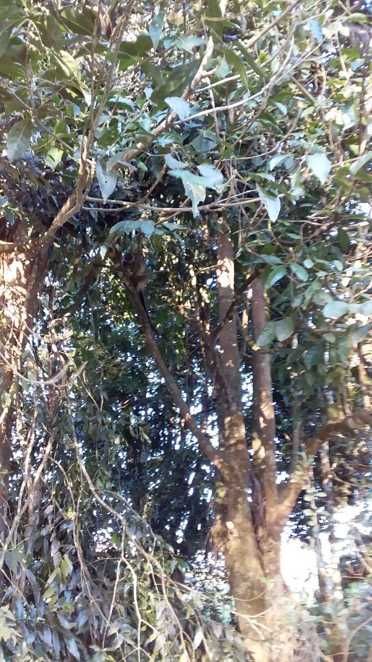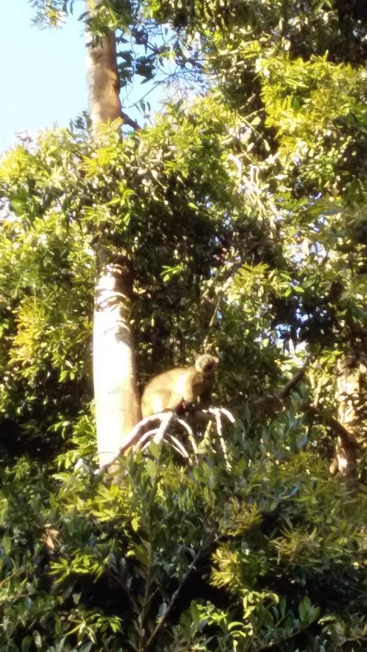 Voici un kangourou tree, assez rare car assez timide, il vit dans les arbres et se sert de sa longue queue pour trouver son équilibre. Au sol il se déplace comme un kangourou. De visage, il ressemble un peu à un oppossum. Voici une maman avec son bébé dans sa poche qu’on a eu la chance de voir juste avant la tombée de la nuit.