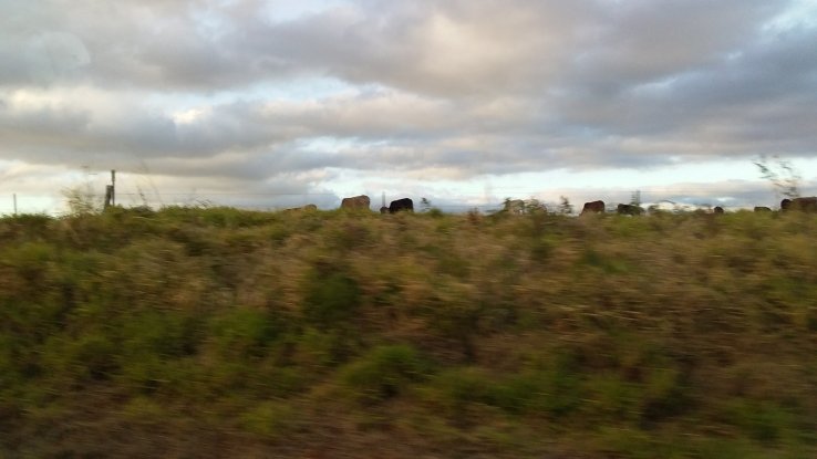 Essayant d’oublier le fait qu’on est totalement perdus sur l’île et comme on avait prévu de arrêter pour manger, on emporte les sacs de pic-nique et on se dit qu’on reessayera de démarrer avec le ventre plein.