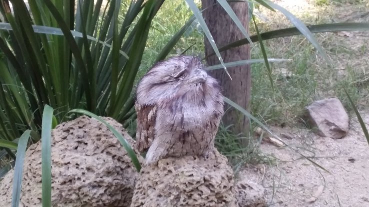 Cet oiseau étrange, de la famille des chouettes avec une tête démesurément grande par rapport à son corps.