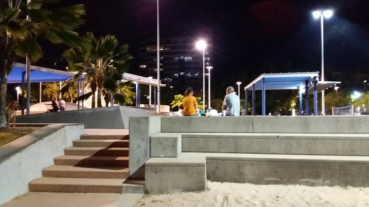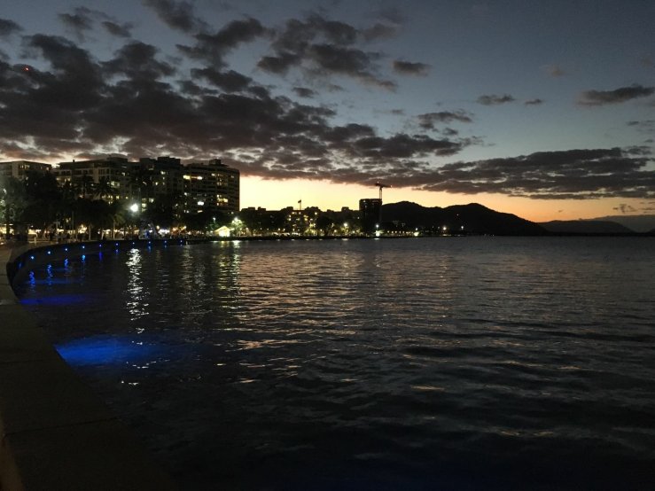 L’esplanade de Cairns à la nuit tombée est très sympa, barbecues, aires de pic-nique, terrains de beach volley et pubs tout le long en fond une promenade agréable si on ignore les flying fox, sorte de chauves souris de la taille d’un gros chat qui hurlent toute la nuit.