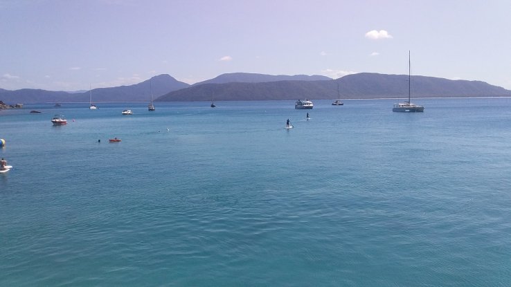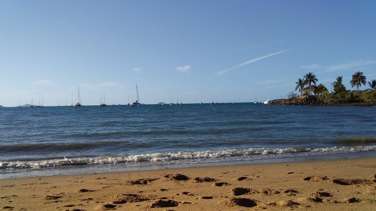 Airlie beach est une jolie petite ville côtière avec un lagon et une jolie plage très peu fréquentée (puisque nous sommes hors saison) où il fait bon se reposer et regarder les palmiers sur fond de ciel bleu…