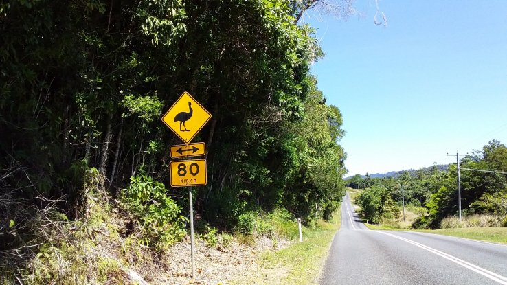 Les panneaux de circulation indiquent la présence du casoar partout.
