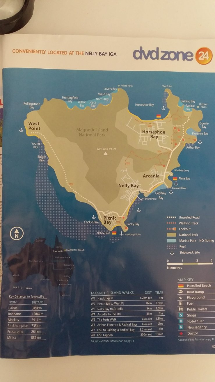 C’est une traversée de 20mn face à Townsville. Magnetic Island à été surnommée comme ceci par le capitaine Cook (encore lui!) dont le compas du navire se dérègla quand il arriva sur l’île. Il mis donc en cause la masse granitique de l’île.