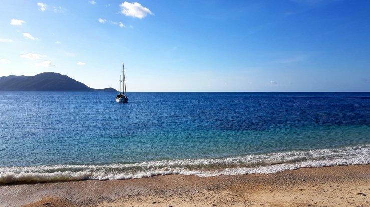 A la fin de la journée, on décide de faire un dernier stop sur la pointe de sable blanc de Dunk island. On laisse donc les affaires dans le bateau, on jette l’ancre et on se pose sur la plage pour admirer la vue magnifique.
