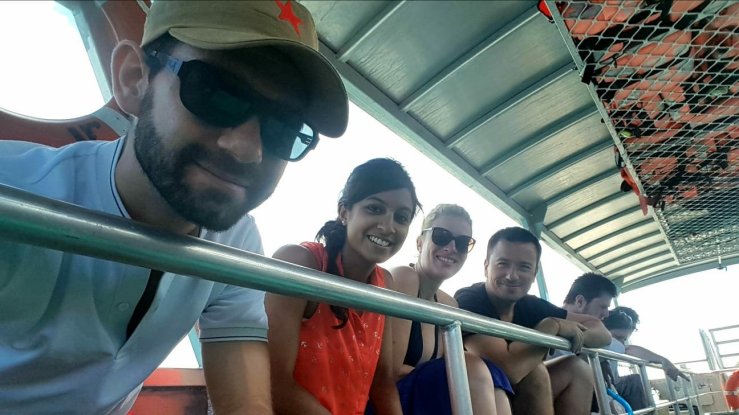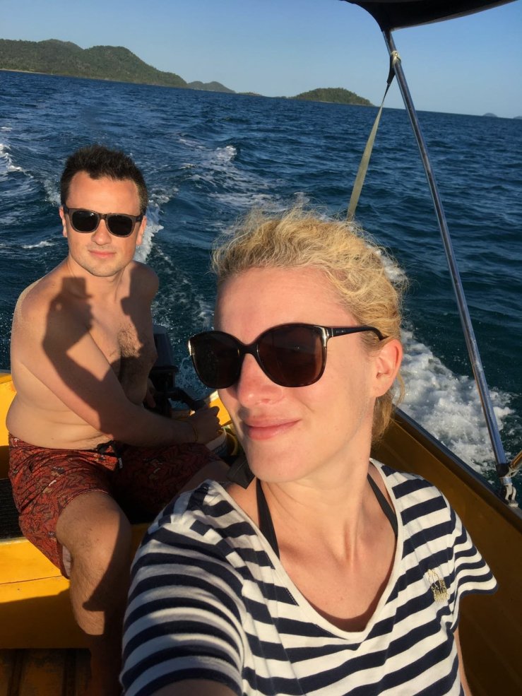 Au bout d’une heure de bateau, en s’approchant un peu trop près de la côte, on racle le moteur sur le sable. Impossible de le faire redémarrer… on appelle la location de bateau mais on les entend mal et ça raccroche…