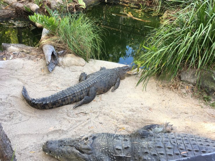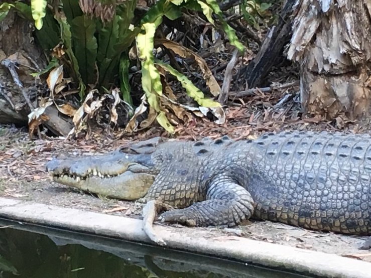 A deux pas de Port Douglas, nous nous arrêtons dans une immense ferme : Hartley’s Crocodile Adventures qui ressemble à un mini Jurrassic Park.